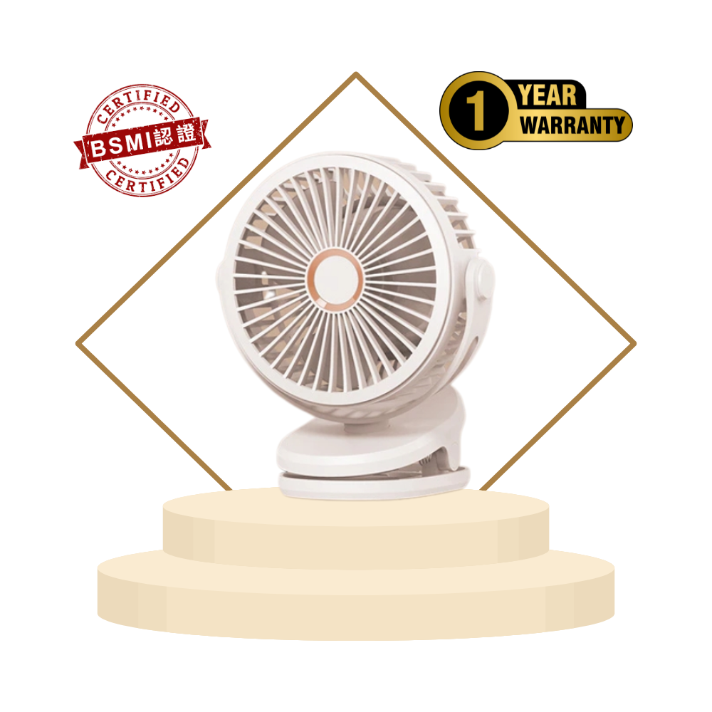 F60 靜音夾扇:10000mAh 長續航、720° 無極旋轉、4–5 檔大風量低噪;可立/可夾/可掛,Type-C 充電,前罩可拆好清潔,隨身與嬰兒車都適用。